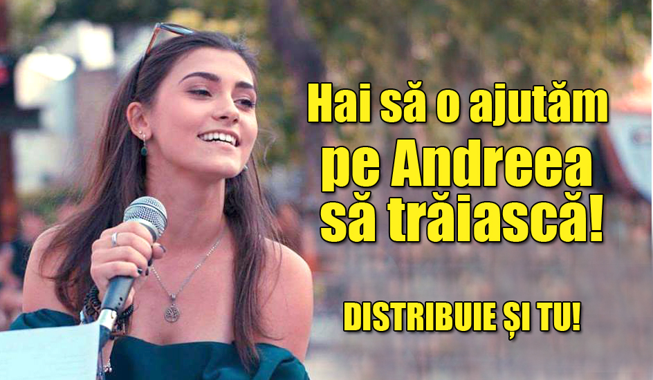 Andreea este o tânără frumoasa si talentata, inteligenta si responsabila, plina de energie, indragita si respectata de comunitatea scolara, cu o situatie foarte buna la invatatura și cu un comportament ireprosabil! Acum, însă, duce lupta vieții ei: lupta cu cancerul.