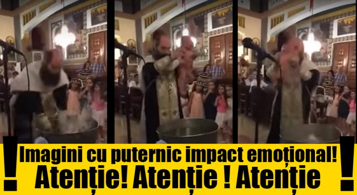 In imagini se observa cum preotul ridica bebelusul dezbracat si il scufunda in cristelnita de mai multe ori, intr-un mod extrem de violent. Imediat dupa ce a fost botezat, copilul a fost inmanat parintilor, care par extrem de nerabdatori sa-si ia copilul in brate, scriu jurnaliștii de la stirilekanald.ro.