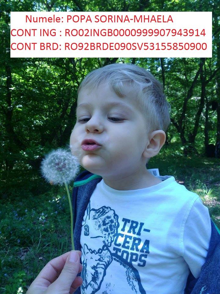 In continuare, parintii Popa Cristian si Popa Sorina Mihaela fac toate demersurile necesare pentru insanatosirea minunatului baietel care nu a dat niciodata niciun semn ca ar fi macinat de aceasta boala. Sursa: https://www.facebook.com/donate/165966697405789/