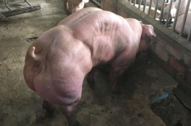 Potrivit mirror.co.uk, fermierul creste porci modificati genetic, cu o masa musculară dublă.