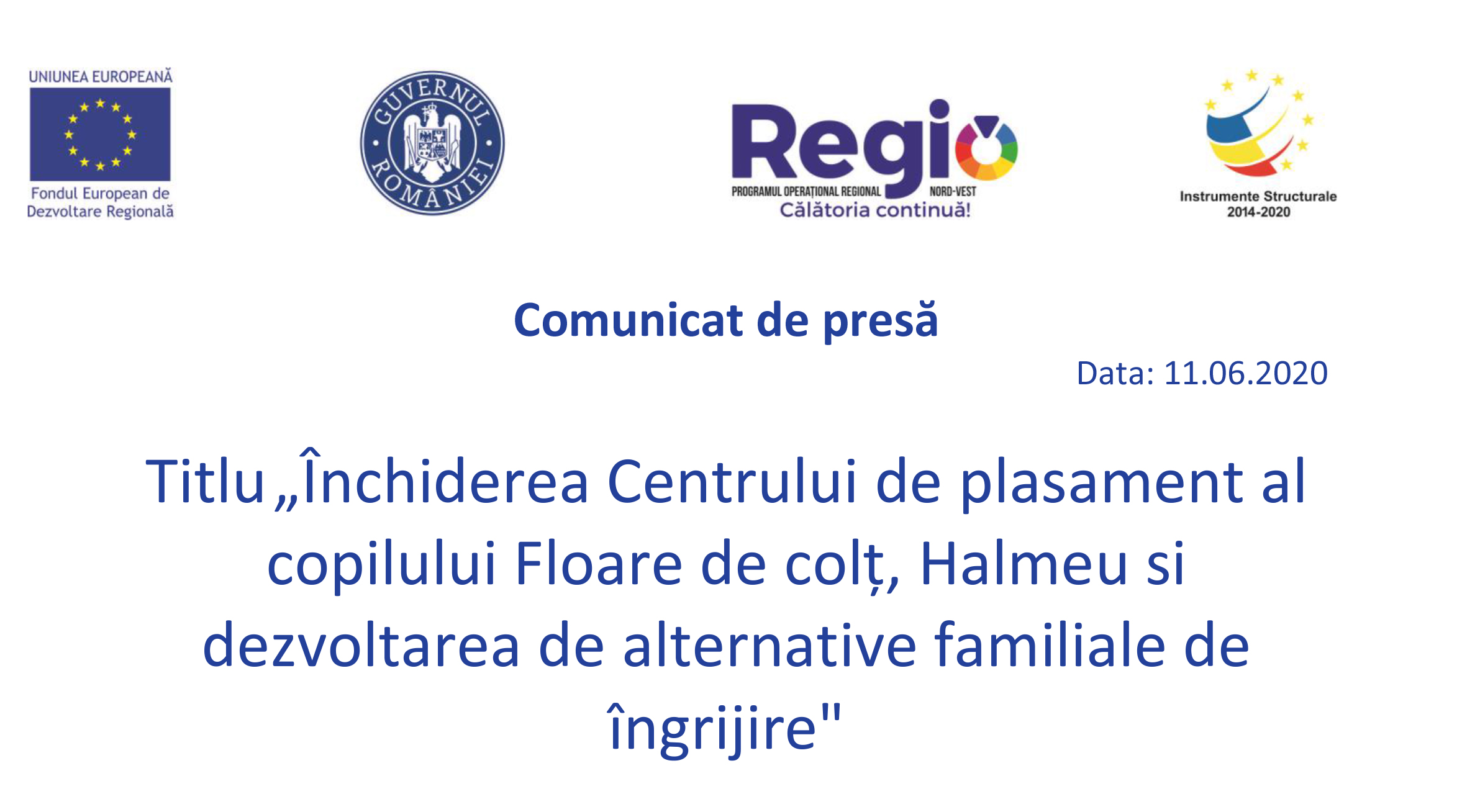 Comunicat de presă: „Închiderea Centrului de plasament al copilului Floare de colț, Halmeu si dezvoltarea de alternative familiale de îngrijire”