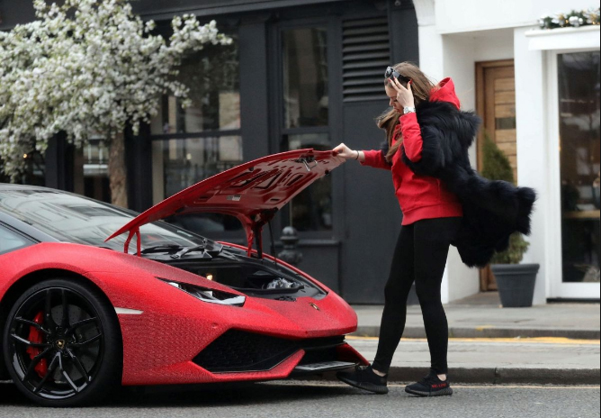 Fostă studentă în Londra, iar în prezent model şi fashion designer, deţine un exemplar al supercarului Lamborghini Huracan.