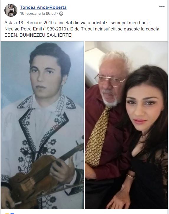 Este vorba despre violonistul profesionist Niculae Petre Emil, care s-a dus în lumea celor drepți chiar în prima zi a acestei săptămâni.