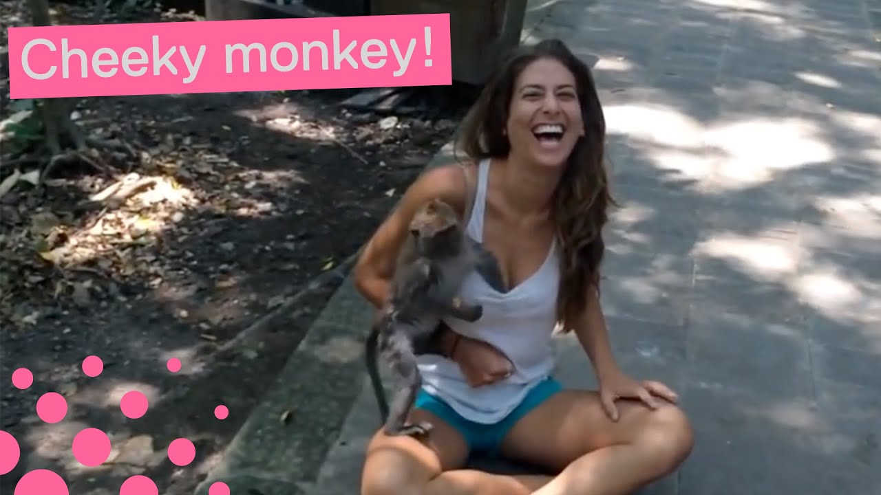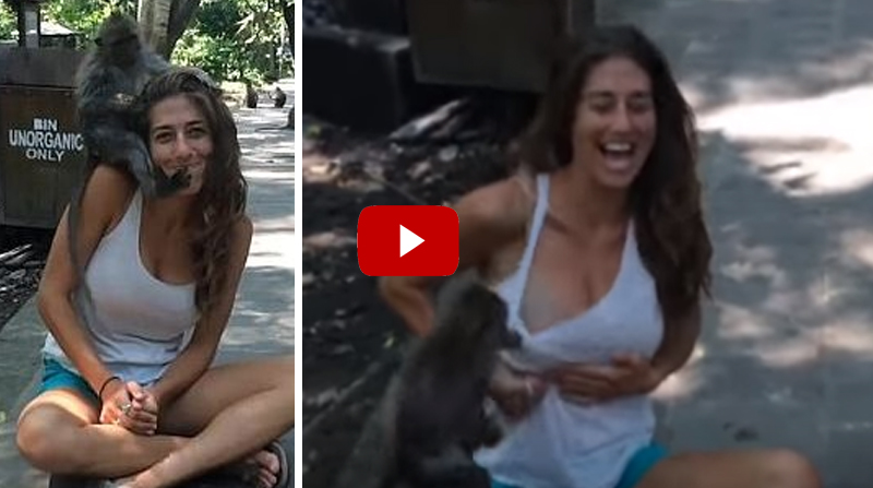 Momente amuzante în Indonezia, în Pădurea Sacră a Maimuțelor! O turistă a trăit momente inedite, după ce o maimuță i-a acordat o atentie deosebită unei tinere!
