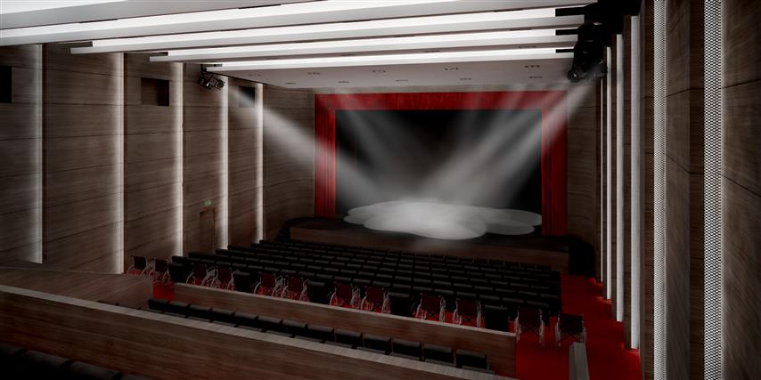 Sala de spectacole / proiecţie cinema, care va avea 305 locuri + 12 locuri pentru persoane cu dezabilități motorii, va fi dotată cu aparatură specializată pentru iluminat de scenă, sisteme de sunet și de proiecție cinema.