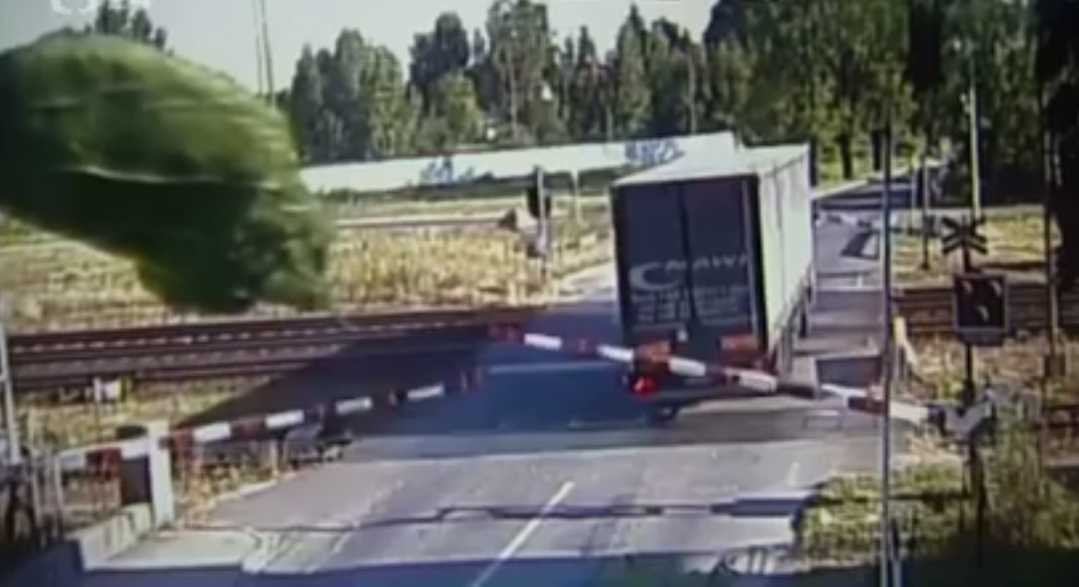 Un videoclip cu un TIR surprins de bariere la calea ferată face înconjurul lumii. Șoferul a reușit să treacă de prima barieră, dar a rămas blocat de bariera următoare, chiar pe șinele de cale ferată.
